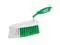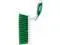 Pointed head for tight corner. Flagged fibers to pick up dust and dirt. Ergonomic rubber grip won't slip when wet. Hanger hole for convenient storage.