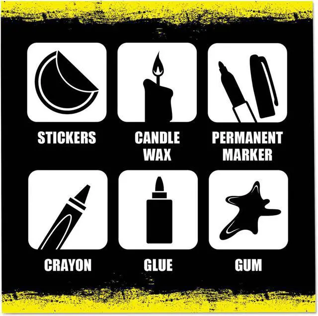Removes sticky, gummy, greasy, gooey problems. Safe on hands. 100% organic. Biodegradable. Removes marker mess. Cleans stickers labels, crayons, makeup, ink markers, carpet stains, candle wax, tape residue, pre wash, oil mess, chewing gum, glue, and more.