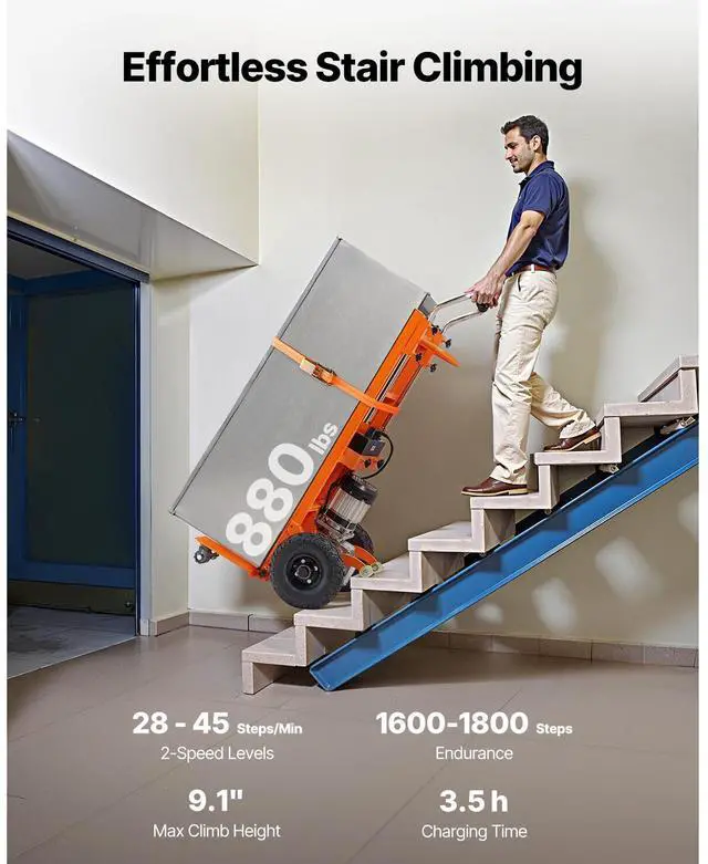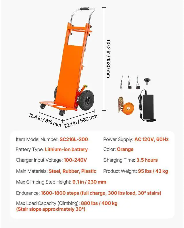 Max Load Capacity (Climbing): 880 lbs / 400 kg (Stair slope approximately 30°)