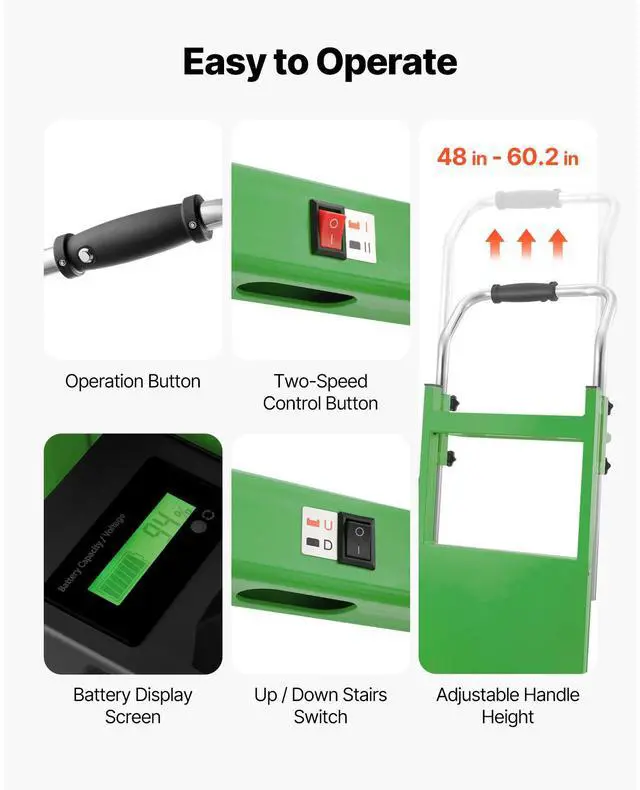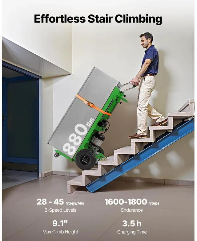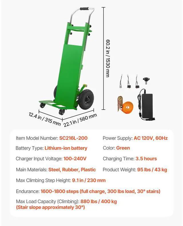 Max Load Capacity (Climbing): 880 lbs / 400 kg (Stair slope approximately 30°)