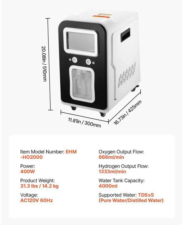 Hydrogen Output Flow: 1333ml/min