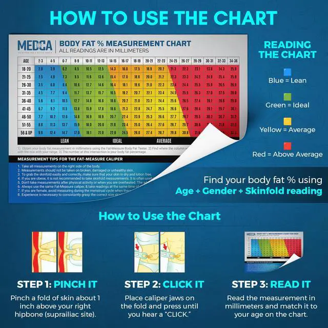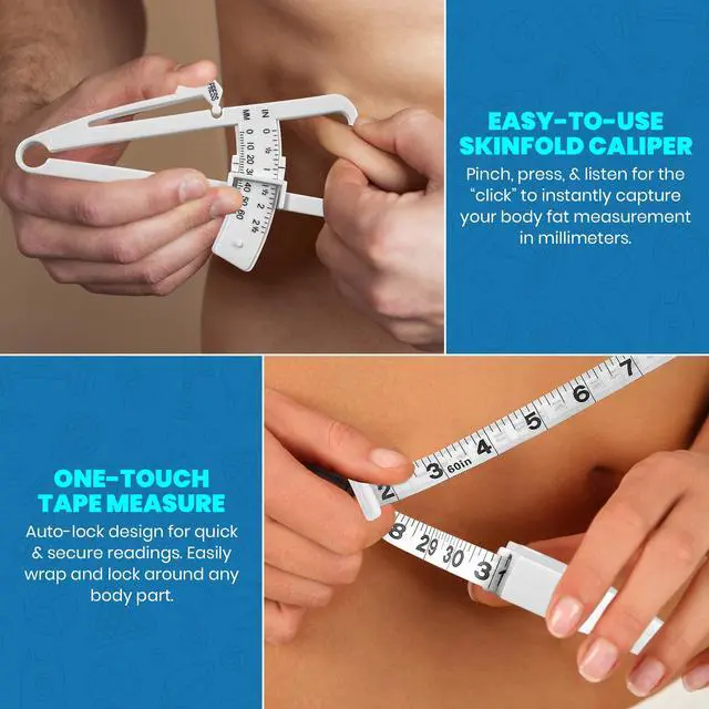 This skin fold caliper, body tape measure, and instructional chart are the best tools of the trade when it comes to accurately and quickly measure your body fat, so that you can diet more accurately and lose weight fast. Each order includes 2 complete sets so you can keep one and give one to your friend or workout partner and that way can hold each other accountable for achieving your weight loss goals!