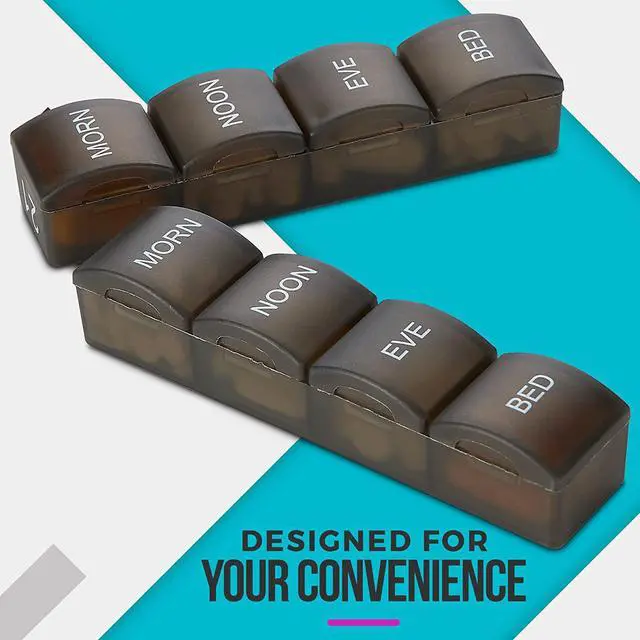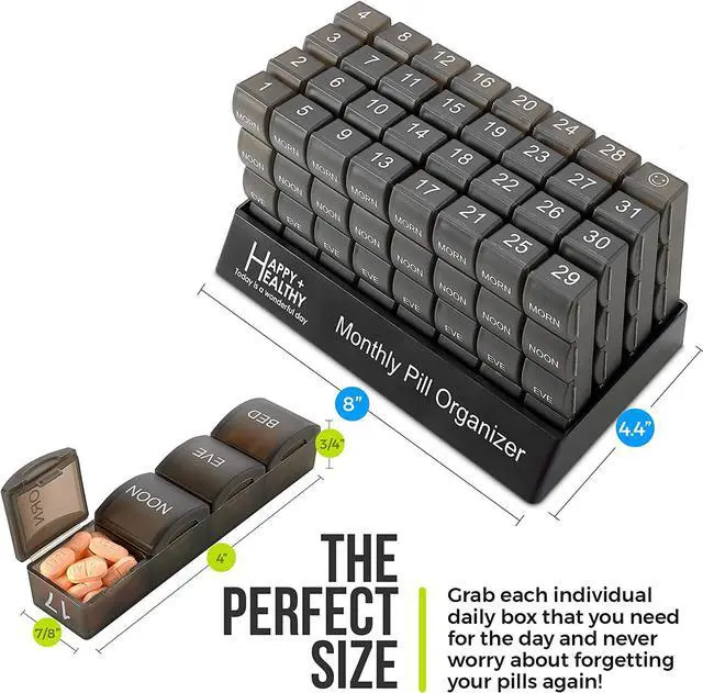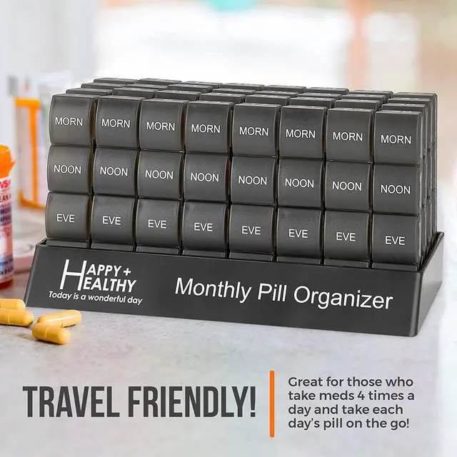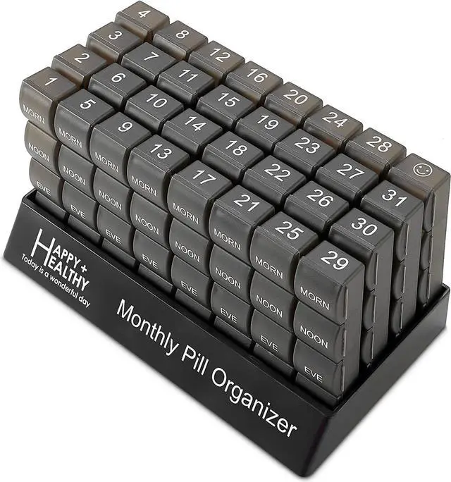 The MEDca 31 day pill organizer features translucent black see through compartments you will be able to check to see if you have taken your pills for the day and you won't have to keep multiple pill boxes.