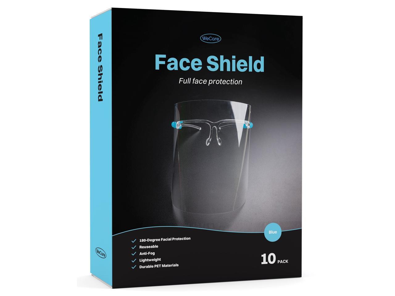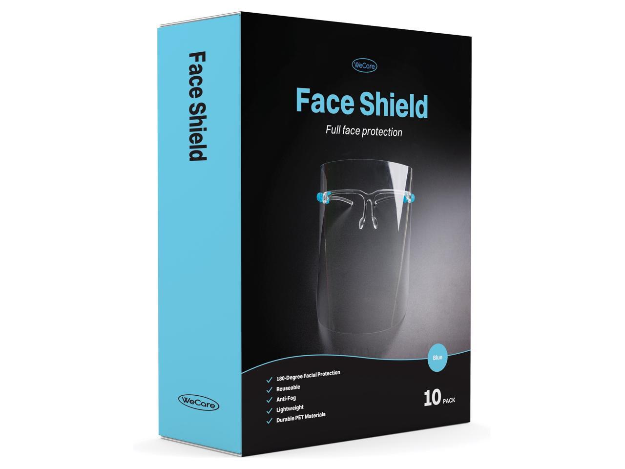 WeCare Face Shield Blue Eyeglasses Frame - Full Face Protection - Pack of 10 (includes Cleaning Cloth)