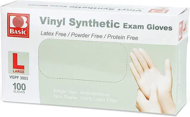 Basic Medical™ Premium Single-Use Medical Grade Vinyl Synthetic Exam Gloves, Latex Free/ Powder Free/Protein Free,