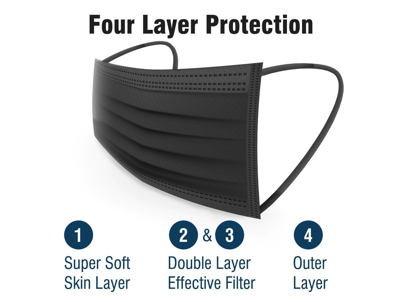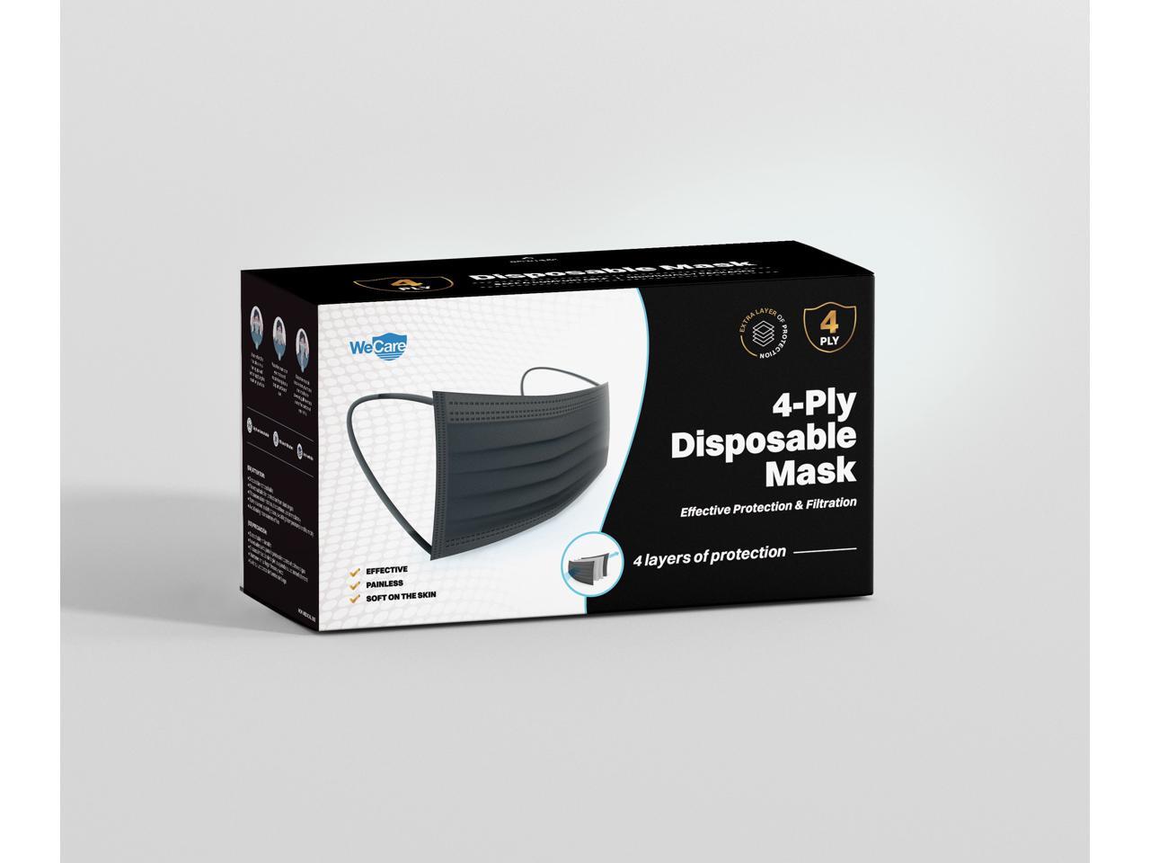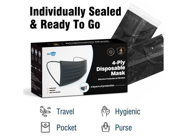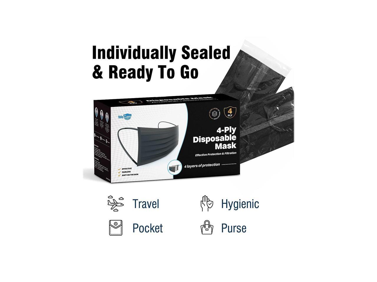 WeCare Disposable Face Mask, 4-Ply with Ear Loop (50 Individually Wrapped) - Black