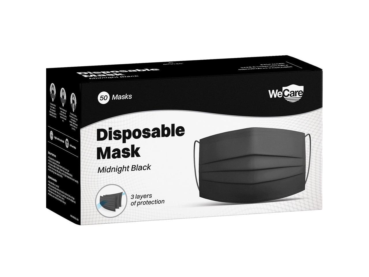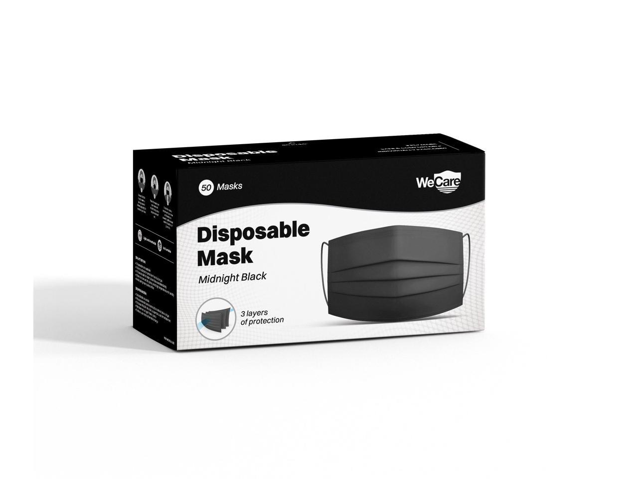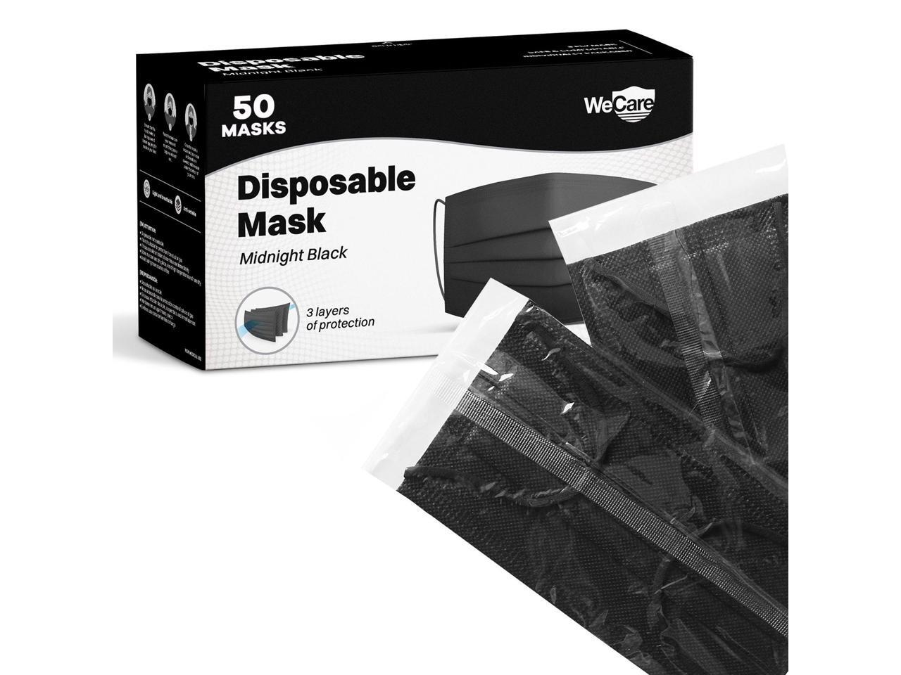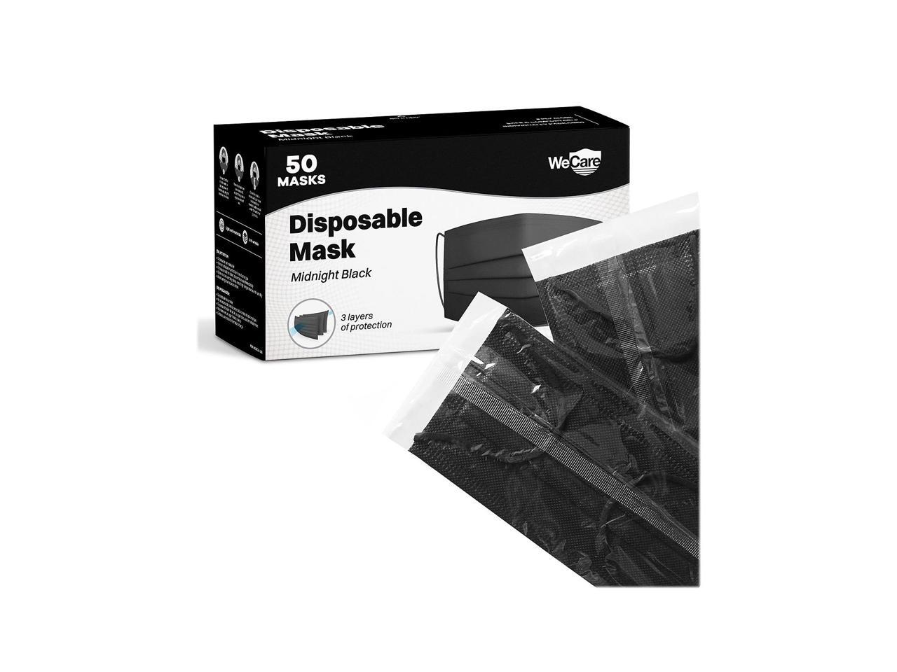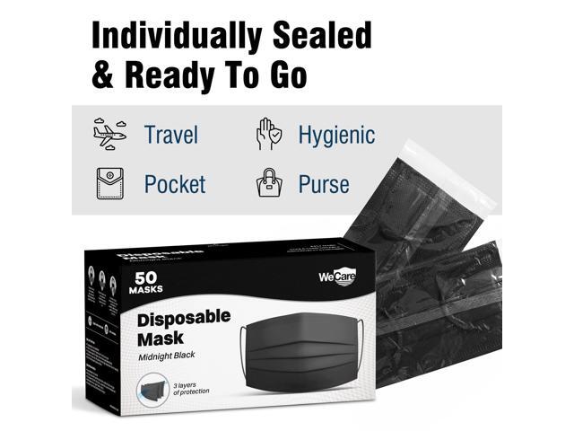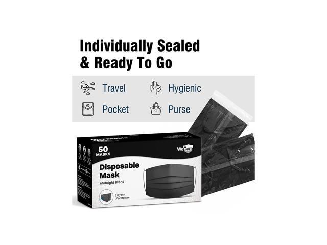 WeCare Disposable Face Mask, 3-Ply with Ear Loop (50 Individually Wrapped) - Midnight Black