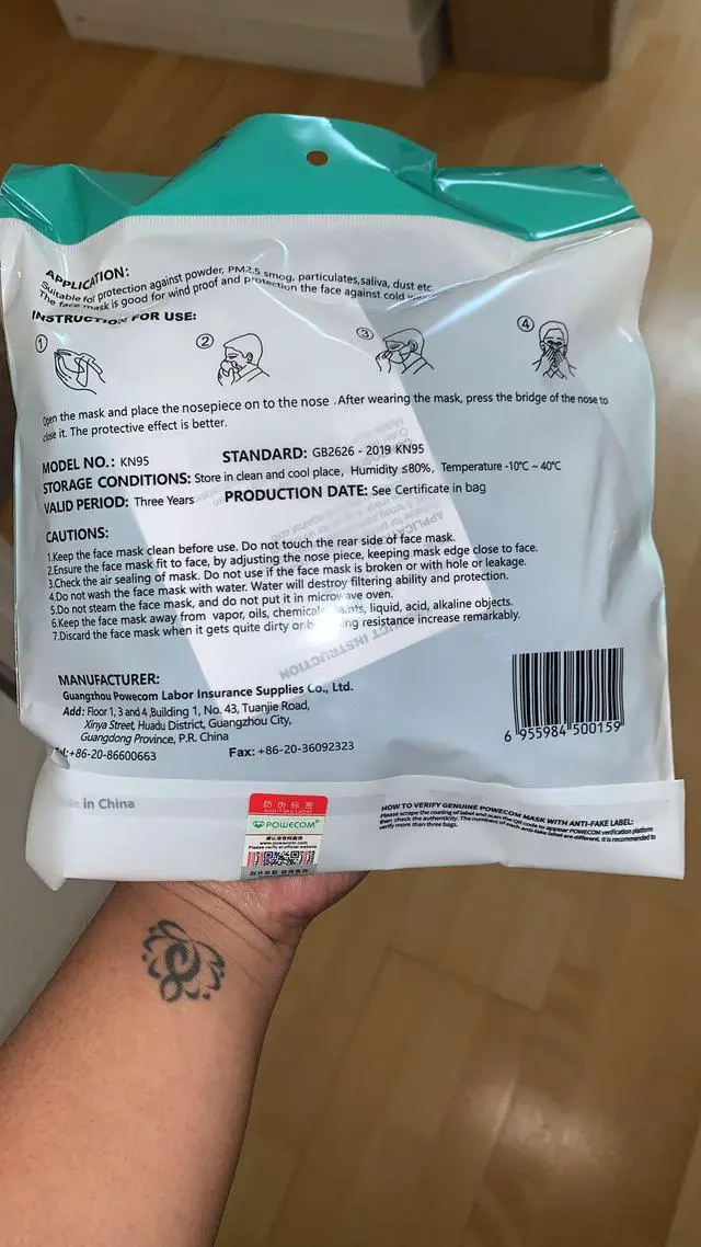 The Powecom KN95 personal respirator, which ships from stock directly from our California warehouse, is a respirator face mask made of a multi-layer filtration system of non-woven breathable fibers and is utilized globally. The Powecom KN95 is manufactured by Guangzhou Powecom Labor Insurance Supplies Co., LTD. The Powecom KN95, made to the new standard, will be the same size, shape and use the same production process. The improvement will be from the new melt-blown polypropylene cotton filter layer which will upgrade the breathability factor (respiratory resistance) of the mask. This new enhancement will help make it easier to breathe for the user while still offering filter efficiency greater than 95%.