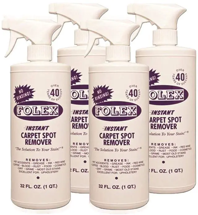FOLEX Instant Carpet Spot Remover works on any colorfast carpets, upholstery & materials that can be safely dampened with water. Our amazing surfactant action removes pet accidents, grease, ink, red wine, coffee, blood, rust, food, cosmetics, dirt, grime, and even most old stains. FOLEX is water based, odor free, non-magnetic, non-flammable, and contains no solvents. No rinsing, vacuuming, or waiting to see results. And FOLEX Instant Carpet Spot Remover is Safe to Use Around Children and Pets if used as directed!