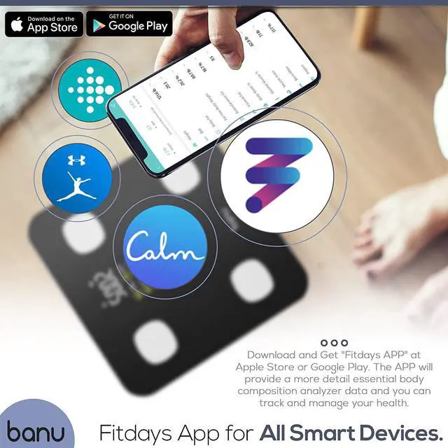 - Fitdays App for All Smart Devices: Download and Get "Fitdays APP" at Apple Store or Google Play. The scale for body weight syncs the data onto your smartphone automatically via Bluetooth 4.0 BLE. The APP will provide more detailed essential body composition analyzer data and you can track and manage your health. Sync to another fitness app is available too.