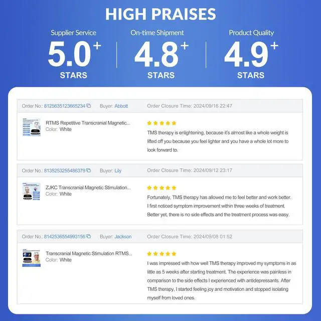Package Details of TMS Therapy Treatment Safe and Effective. includes 1*Transcranial Magnetic Stimulation Machine+ 1set*Magnetic Therapeutic Head, 1*Charging Power Supply,1*User's Manual, and 1*Packing Box. Also we provides one year warranty. More detail information, please see the product manual. If you have any questions about our transcranial magnetic stimulation treatment, please contact us. We are committed to providing you with satisfactory services.
