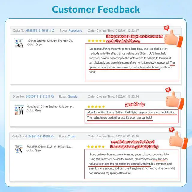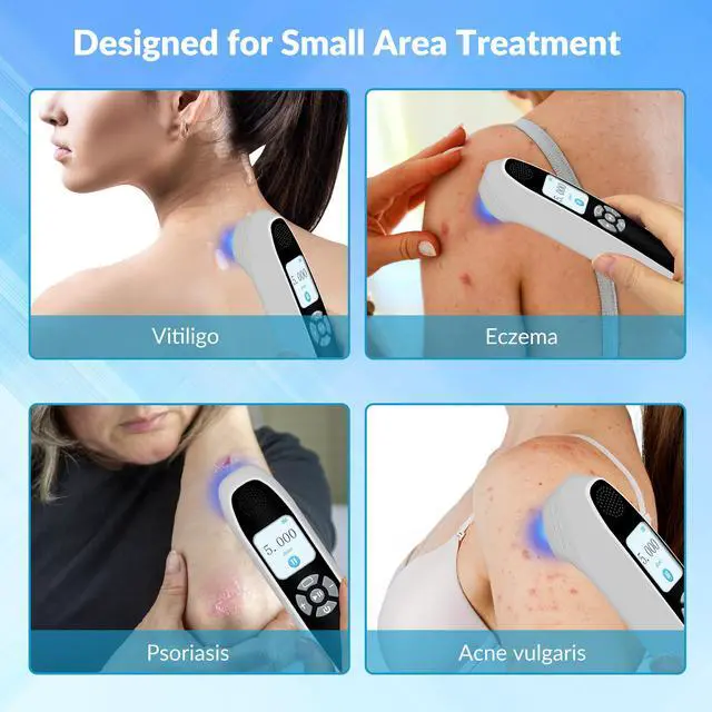 [308nm UVB Phototherapy Light]308 excimer ultraviolet light therapy is narrow-spectrum ultraviolet B band phototherapy device with a peak wavelength of 308nm. Blue light therapy can direct high-energy uv rays to the treatment site, that`s targeted therapy, protecting normal skin. Non-invasive treatment of various skin diseases without side effects. Such as vitiligo, psoriasis etc. Suppresses overactive immune system, activate pseudo-catalase, boosts vitamin D levels.