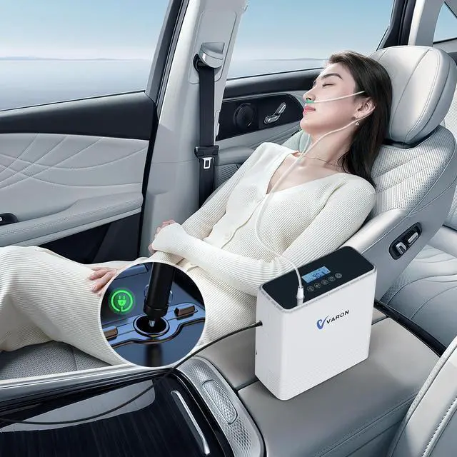 l Equipped with an AC power cable, a car power cable and a built-in 114Wh 5200mAh battery, the oxygen concentrator portable machine has 3 power supply options, suitable for car, indoor or outdoor use. It is equipped with a multi-purpose bag for easy portability for outdoor use, whose widened shoulder straps greatly relieve the stress on your shoulder. Great for traveling, walking or shopping.