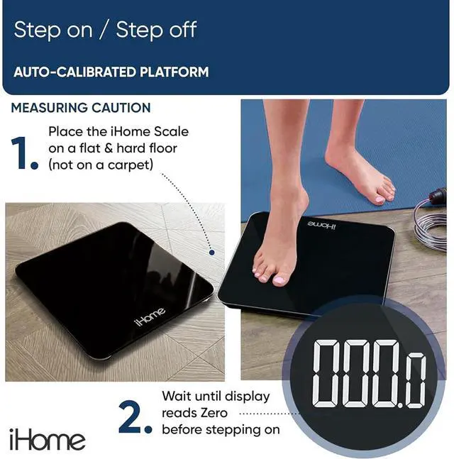 Stable and Strong: With an industry leading 11 Inch X 11 inch scale platform, this scale is comfortable and stable to stand on. Whether you call it a body scale, digital bathroom scale for body weight, weighing scale or a weigh scale, iHome has you covered!