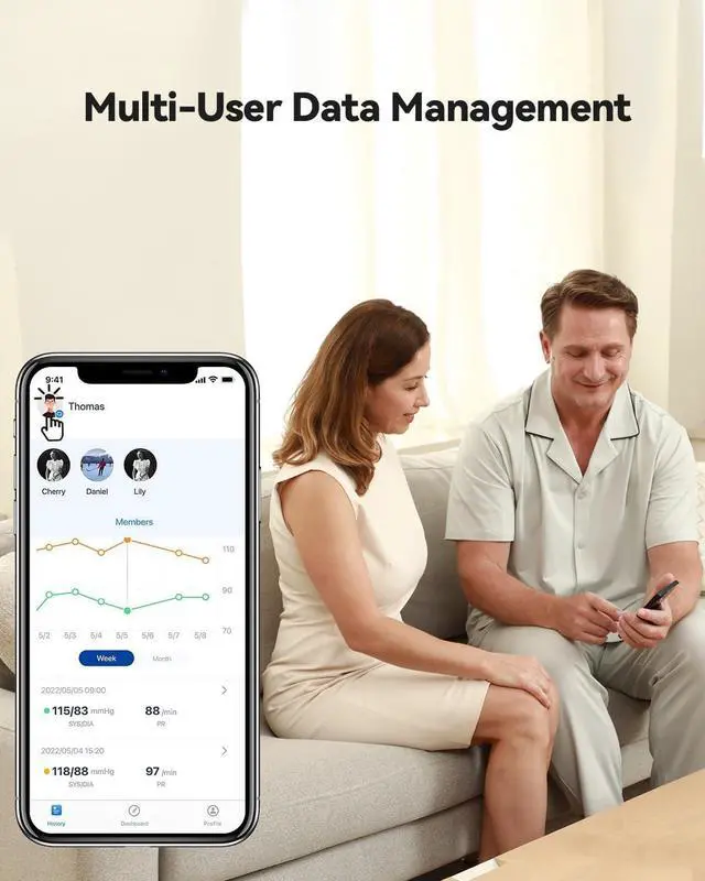 BUILT-IN BLUETOOTH- Multi-user record management on ViHealth app. Free to access, review and share records & reports (PDF & CSV) on your iOS or Android
