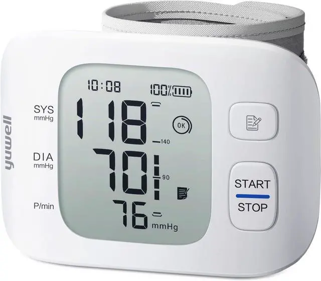 Easy to Operation -- yuwell blood pressure monitor wrist is fully automatic, just need to press one " Start" button to start and it will be automatically power off 3 minutes after stopping using it. A Blood Pressure Monitor, a wrist cuff, an USB Charging Cord, batteries and a Manual are included.