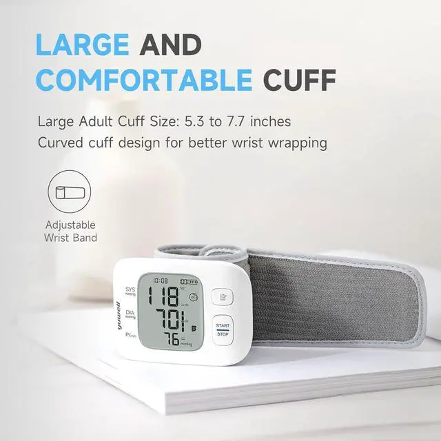 Comfortable and Adjustable Wrist Cuff -- Our adjustable wrist cuff comfortably fits adult arm sizes from 5.32 to 7.68 inches, allowing for a snug fit on almost everyone. Intelligent pressurization technology can reduces discomfort and tension caused by excessively inflation