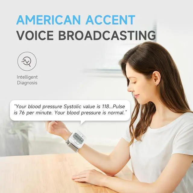 Voice Broadcast and 74 Sets Memory -- The American assent voice broadcast and the large LCD screen show you the reading results, including systolic, diastolic, pulse rate. Intelligent diagnosis will broadcast to remind you if your blood pressure is normal or not at the end of measurement. It can store 74 sets measurements to keep track of your blood pressure every day.