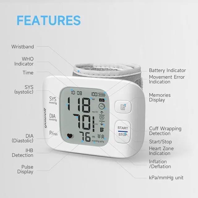 Accuracy and position Detection -- yuwell wrist blood pressure monitors come with Heart Zone Guidance, which helps to guide your wrist to the proper position (at heart level). Fully automatic blood pressure checker has advanced measuring techniques, to provide you the most accurate reading