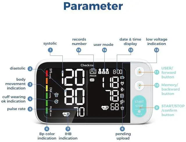 Dual LCD Display - With a large 5.5 " LCD screen, the blood pressure machine displays your previous reading next to your current reading for convenient comparison