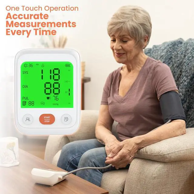 USER-FRIENDLY DESIGN: Easy operation with intuitive interface make monitoring hassle-free. One touch operation, just press and have results in 40 seconds with our BP cuff.