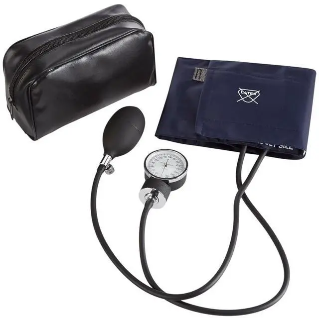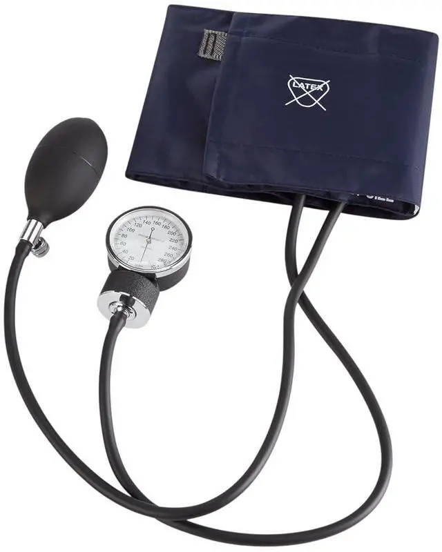 McKesson Basic Pocket Aneroid Sphygmomanometer - Blood Pressure Gauge and Cuff, 2 Tubes, for Adults, Navy Blue - Large Cuff, 23 cm to 40 cm, 21.6 in Long Tubes, 1 Count