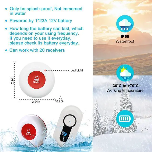 ![]() Vibrate Caregiver Pager | ![]() Monitor with Camera | ![]() Watch Call Button | ![]() Battery Power Pager | ![]() Intercoms Wireless | ![]() Deaf DoorBel | ![]() Hearing Impaired DoorBell |