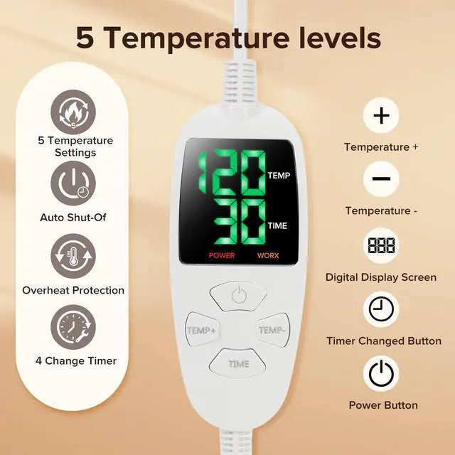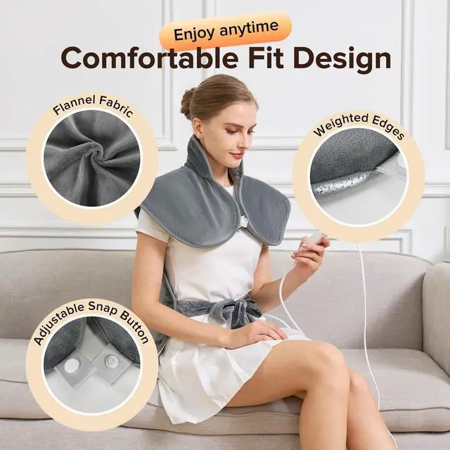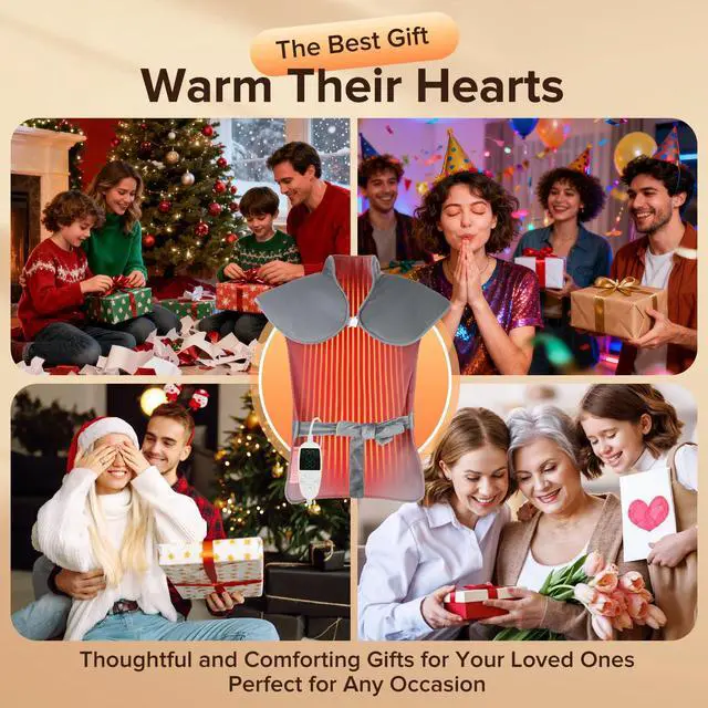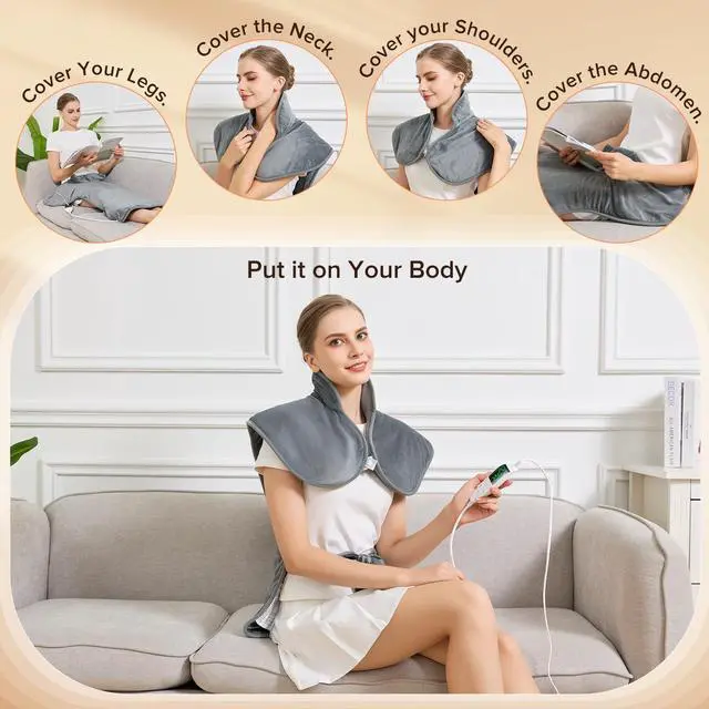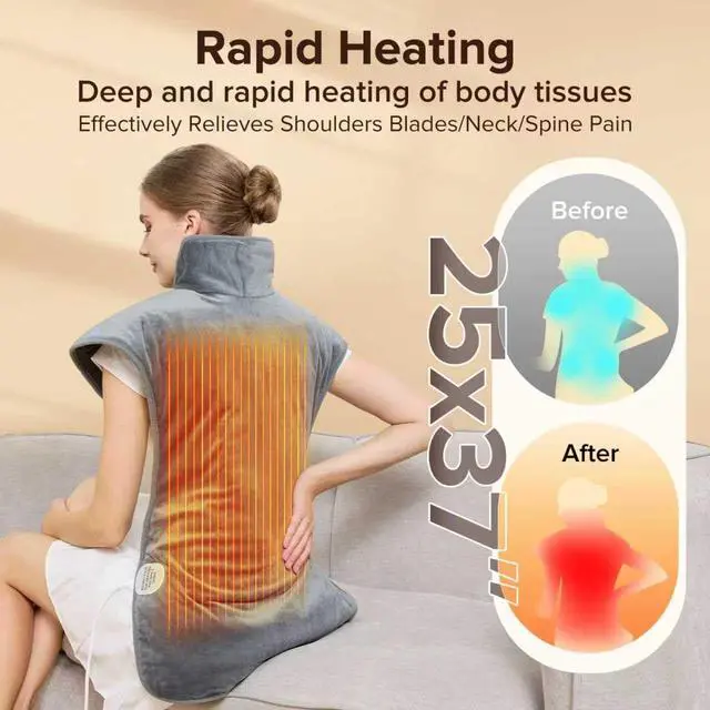 Experience soothing comfort from head to toe with our Extra Large Electric Heating Pad (25"x37"), designed to deliver fast, consistent, and deeply penetrating heat therapy. Whether youre struggling with neck and shoulder stiffness, back tension, period cramps, or post-workout soreness, this wearable heating pad offers full coverage for targeted relief. Its oversized design ensures even heat distribution, helping to ease tight muscles, boost circulation, and relieve stress throughout your entire upper body.