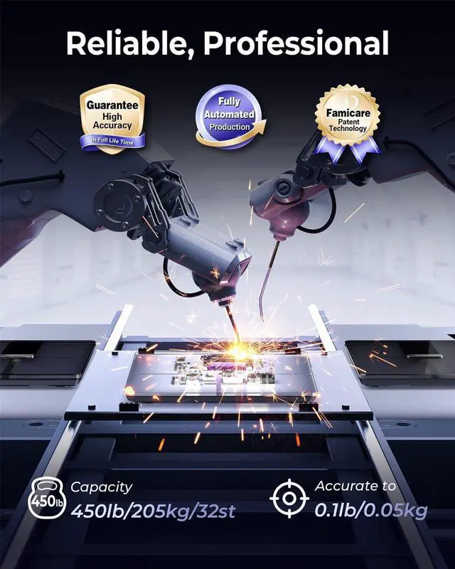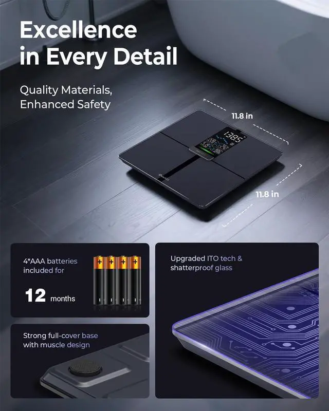 Guarantee High Accuracy: Enhanced with upgraded ITO technology and Famicare's patented innovation, our scale ensures lifelong precision and accuracy down to 0.1lb. The ITO tech offers a full platform sensor area for accommodating all foot sizes, better than typical four-electrode scales