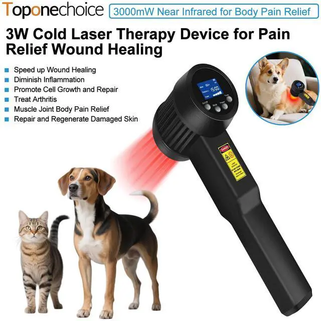 Toponechoice 3W cold laser apparatus for physical therapychemo induced neuropathy 650nm*15+808*10nm red light laser