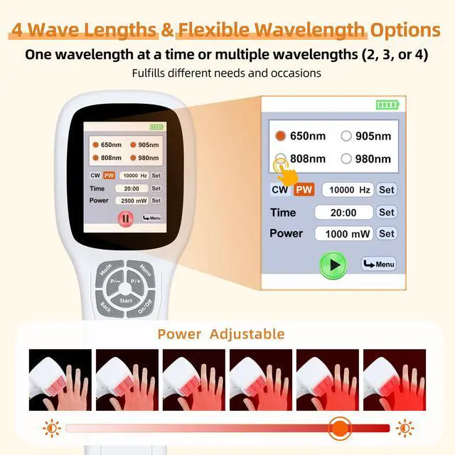 | Wavelength | 650nm*10pcs*100mW+808nm*5pcs*100mW+905nm*5pcs*100mW+980nm*5pcs*100mW |