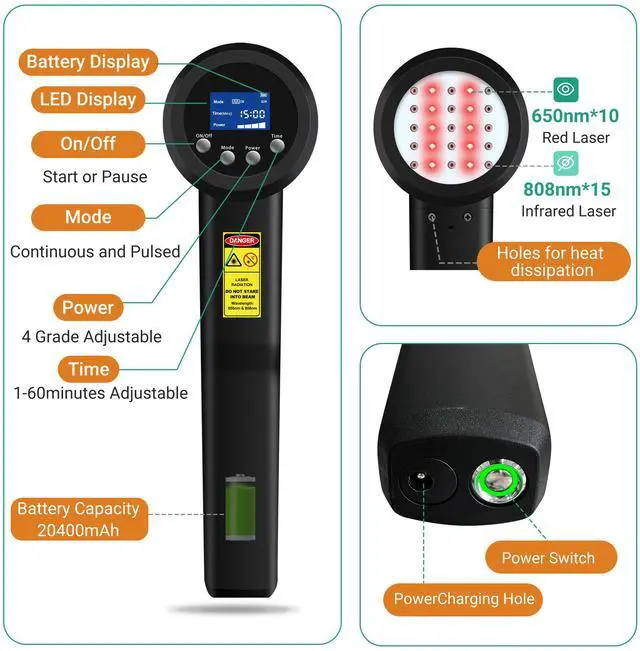 • Dual Use for Humans and Pets: Suitable for humans suffering from knee arthritis, cervical spondylosis, trigeminal neuralgia, and plantar fasciitis, as well as pets (dogs, horses, cats, etc.) suffering from gingivitis, arthritis dogs cold laser pain relief, canine cold laser therapy, equine cold laser therapy, and cat cold laser therapy.