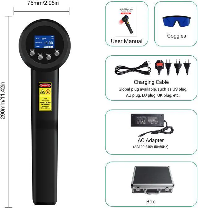 • 1* Cold laser therapy device main unit with corresponding power