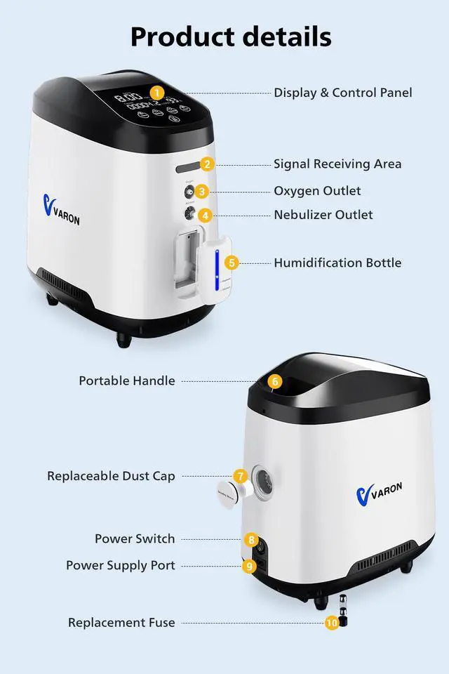 Oxygen Concentration: 93±3% (1-2L/min), 35±3%~78±3% (3-8L/min)