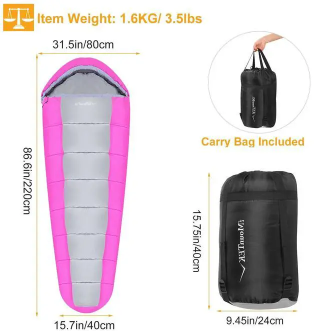 *LIGHTWEIGHT SKIN-FRIENDLY & DURABLE:Made of 190T polyester for lining and outer side which is skin-friendly and durable. The high-quality hollow cotton material for filling is used to ensure the bag is warm,lightweight,durable,and easily portable. No more lugging around excessive weight in your backpack.