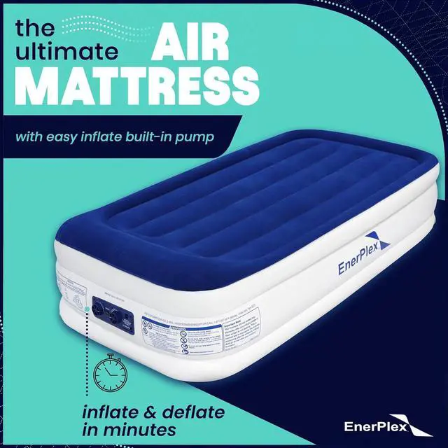 EnerPlex Twin Air Mattress with Built in Pump - 13" Luxury Size Self-Inflating Blow Up Mattress with Neck Support - Inflatable Air Bed for Portable Travel & Home Use (Blue/White)