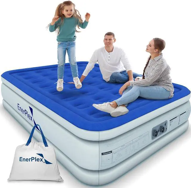EnerPlex King Air Mattress with Built-in Pump - 16 Inch Double Height Inflatable Mattress for Camping, Home & Portable Travel - Durable Blow Up Bed with Dual Pump - Easy to Inflate/Quick Set Up?