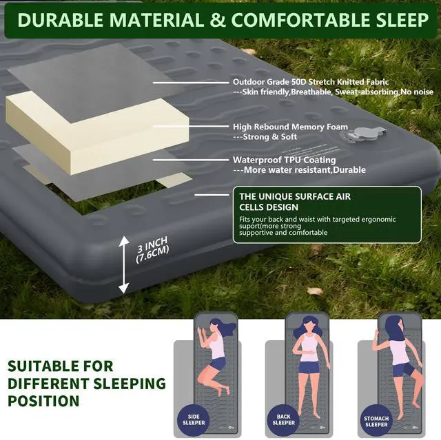 | Special Feature | Built-In Pillow, Built-In Pump, Inflatable, Insulated, Portable |