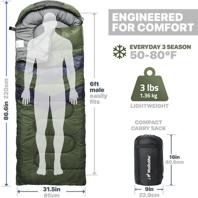 Many factors affect comfort but temperature is key. Choose a bag with a lower temp limit that matches your coldest expected conditions, then adjust your MalloMe bag and accessories for added comfort.