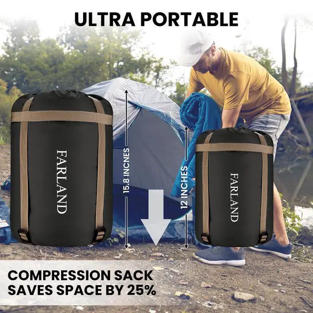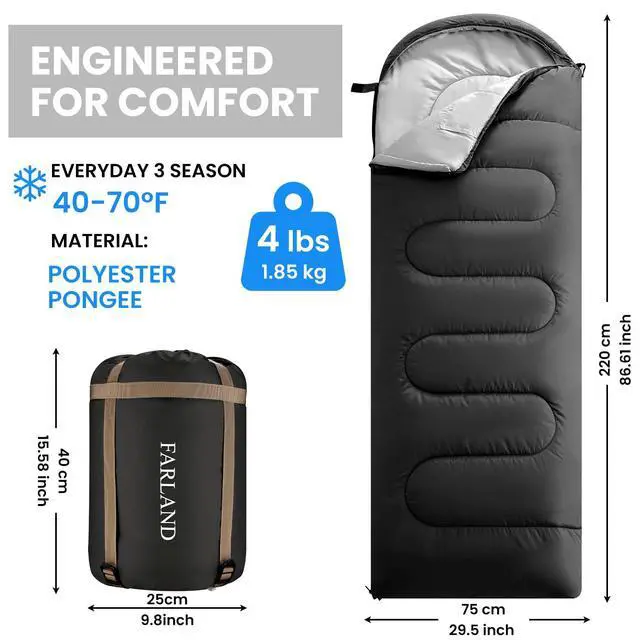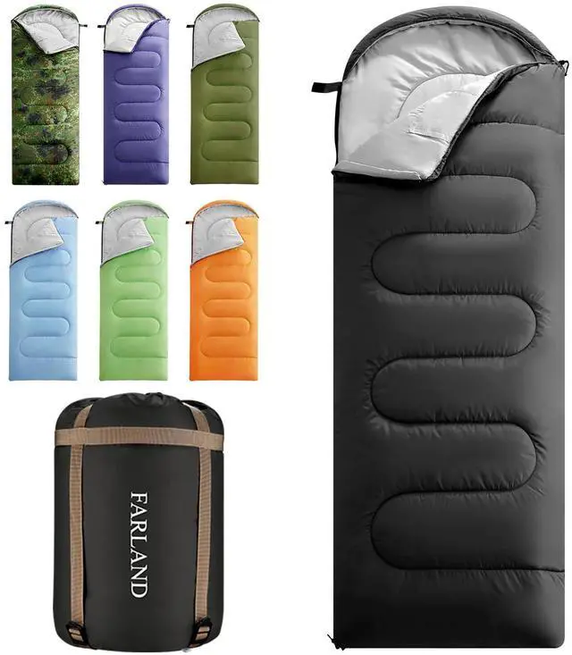 Sleep comfortably, even when it's 20° F outside, in the FARLAND Sleeping Bag with a zipper weather-stripping design. It's designed to keep you warm from top to bottom. The drawstring-adjustable and hood surrounds your head to keep you warm. When you're done, it's easy to put it away in the stuff sack.The Sleeping Bag fits heights up to 6 ft. 10 in. and is machine washable.