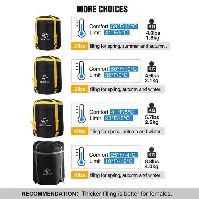 REDCAMP Sleeping Bag is great for both indoor and outdoor activities. With a carrying bag, it can be taken anywhere you want to go. It is suitable for hiking, climbing, camping, self-driving tour, fishing and other outdoor activities. So feel free to BUY for your family & friends.