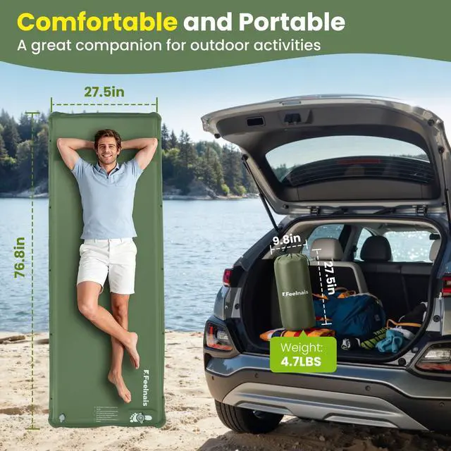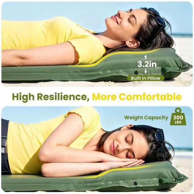 Product dimensions: 76.8*25.6*2 inchesbr Pillow height: 3.2 inchesbr Net weight: 4.7 lbsbr Weight capacity: 300 lbsbr br An ideal gift for outdoor enthusiasts: br Gift packaging includes: Self inflating sleeping pad, 2 Straps, Storage bag, Product manual