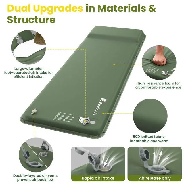 | Additional Features | Built-In Pillow, Compact, Foot Pump |