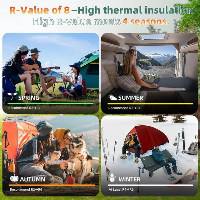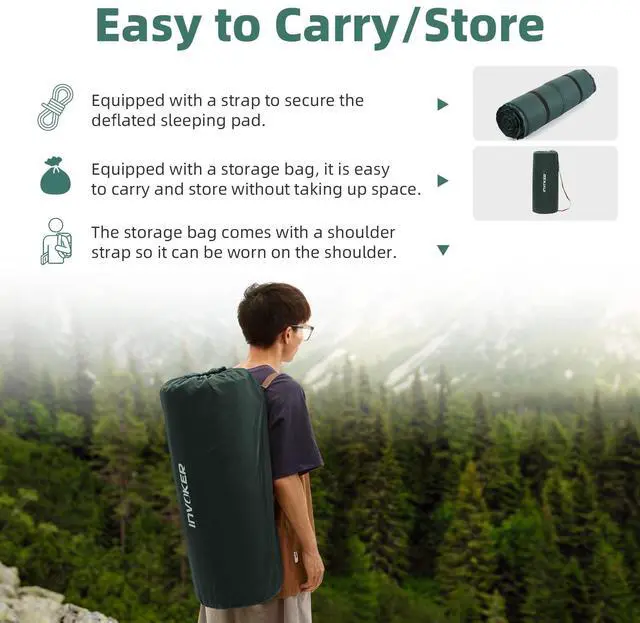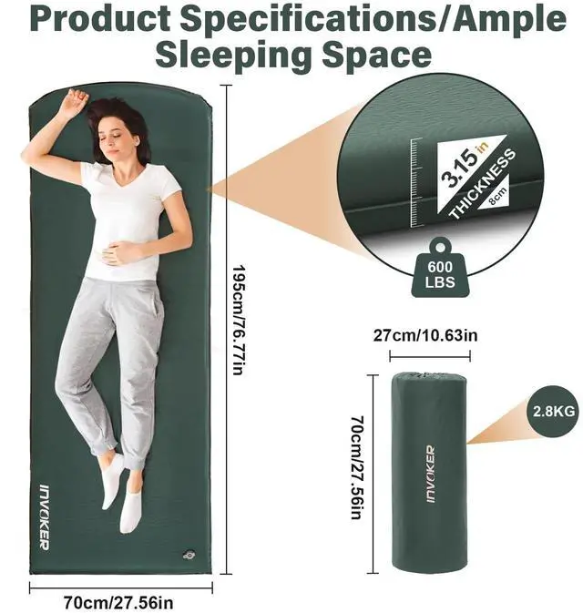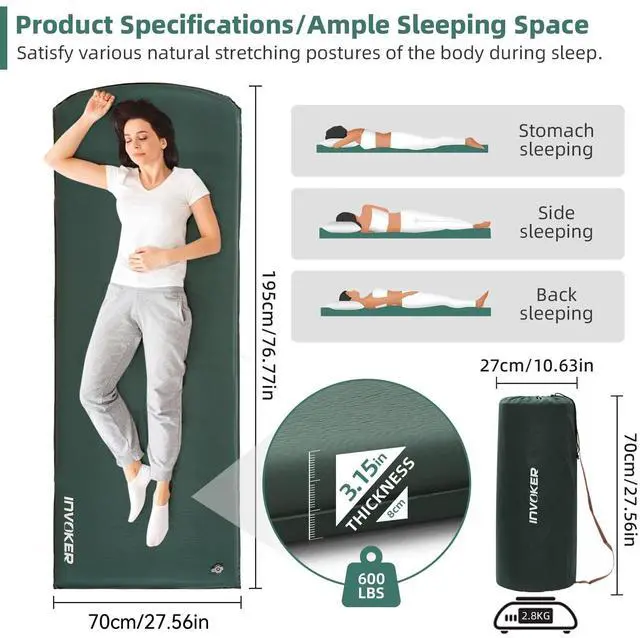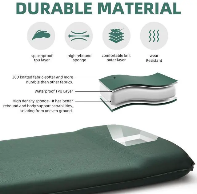 3.15" Self Inflating Camping Sleeping Pad, Ultra-Thick Elasticity Foam Fast Inflating 4-Season Insulated Durable Camping Mat Air Mattress with Pillow, for Tent, Car, Camping, Traveling, Green