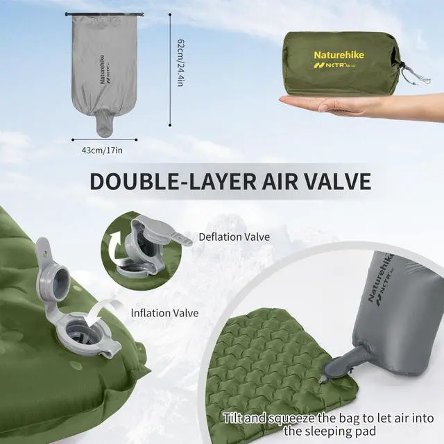 | Included Components | Sleeping pad and inflatable bag |