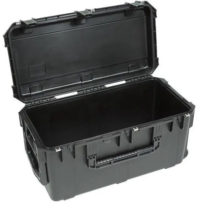 SKB iSeries Injection Molded Mil-Standard Waterproof Cases are molded of ultra high-strength polypropylene copolymer resin, and feature a gasketed, water- and dust-tight, submersible design (MIL-C-4150J / IP67) that is resistant to corrosion and impact damage. Other standard features include a molded-in hinge, patented "trigger release" latches, comfortable snap-down rubber over-molded cushion grip handles, automatic ambient pressure equalization valve (MIL-STD-648C), and resistance to UV, solvents, corrosion, and fungus (MIL-STD-810G).