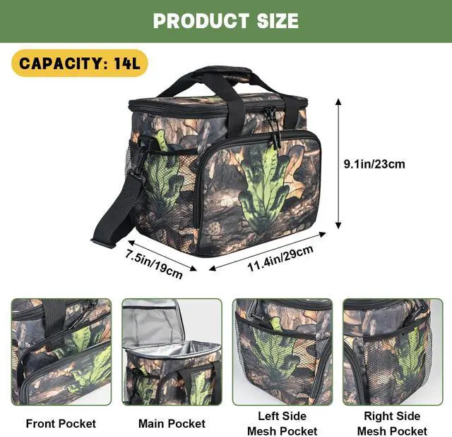 Camo Hunting Tactical Insulated Lunch Bag, 14L Large Camouflage Tactical Lunch Box for Men, Leakproof Lunches Cooler with Mesh Side Pocket &Adjustable Shoulder Strap, Picnic Bag for Adult Camping Travel