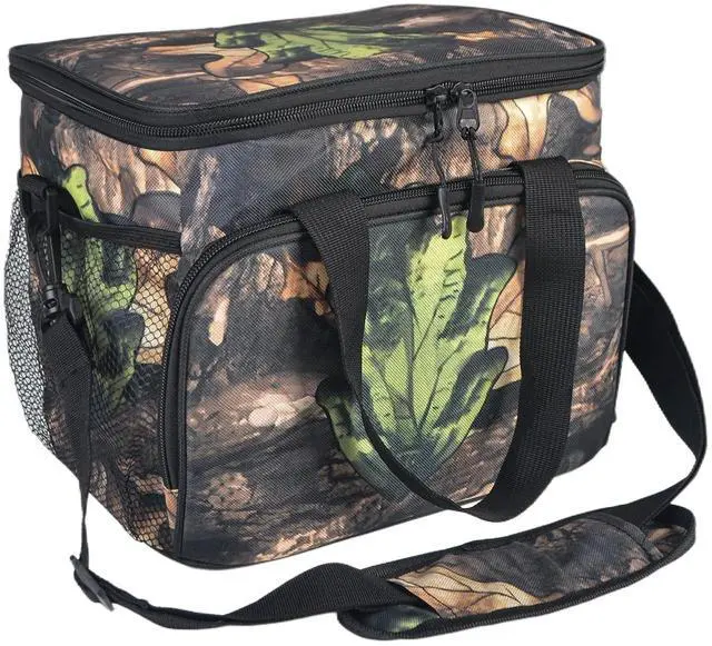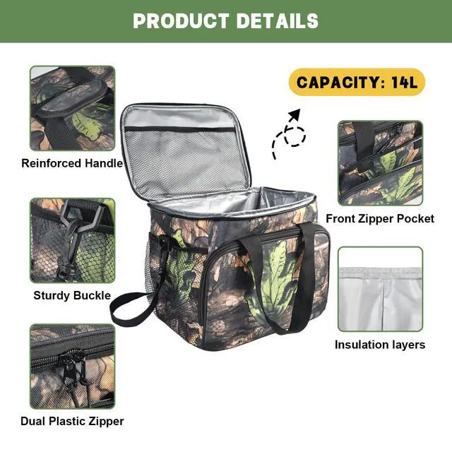 Camo Hunting Tactical Insulated Lunch Bag, 14L Large Camouflage Tactical Lunch Box for Men,Leakproof Lunches Cooler with Mesh Side Pocket &Adjustable Shoulder Strap,Picnic Bag for Adult Camping Travel