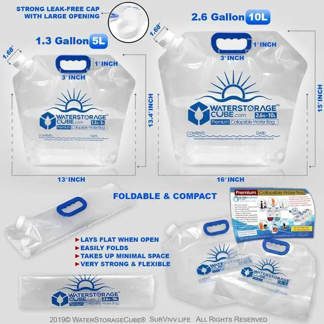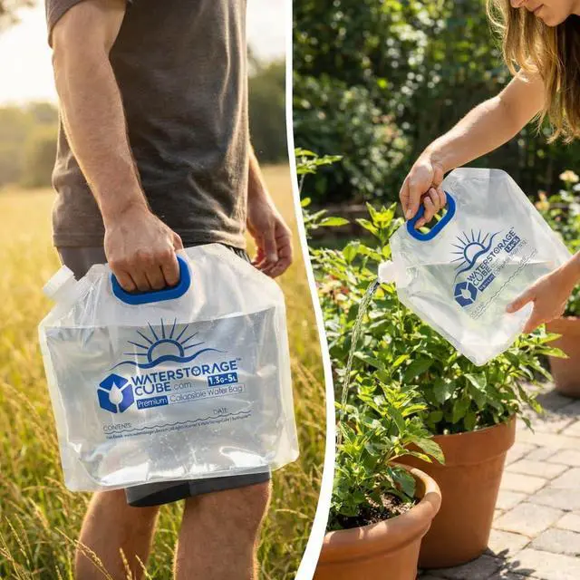 - Collapsible water container bags are very useful for emergency water storage, for camping and for everyday use.