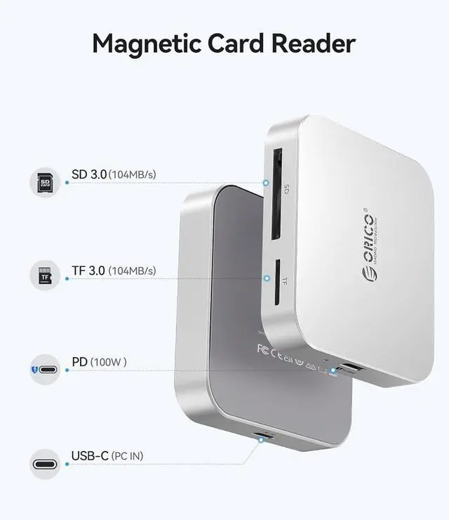 Supports SD/TF 3.0 : Max SD/TF read speed up to 104MB/s; dual-card simultaneous reading eliminates frequent card swapping and boosts creative workflow efficiency.Note: For mobile use, format TF/SD cards to exFAT on a computer first for proper function.